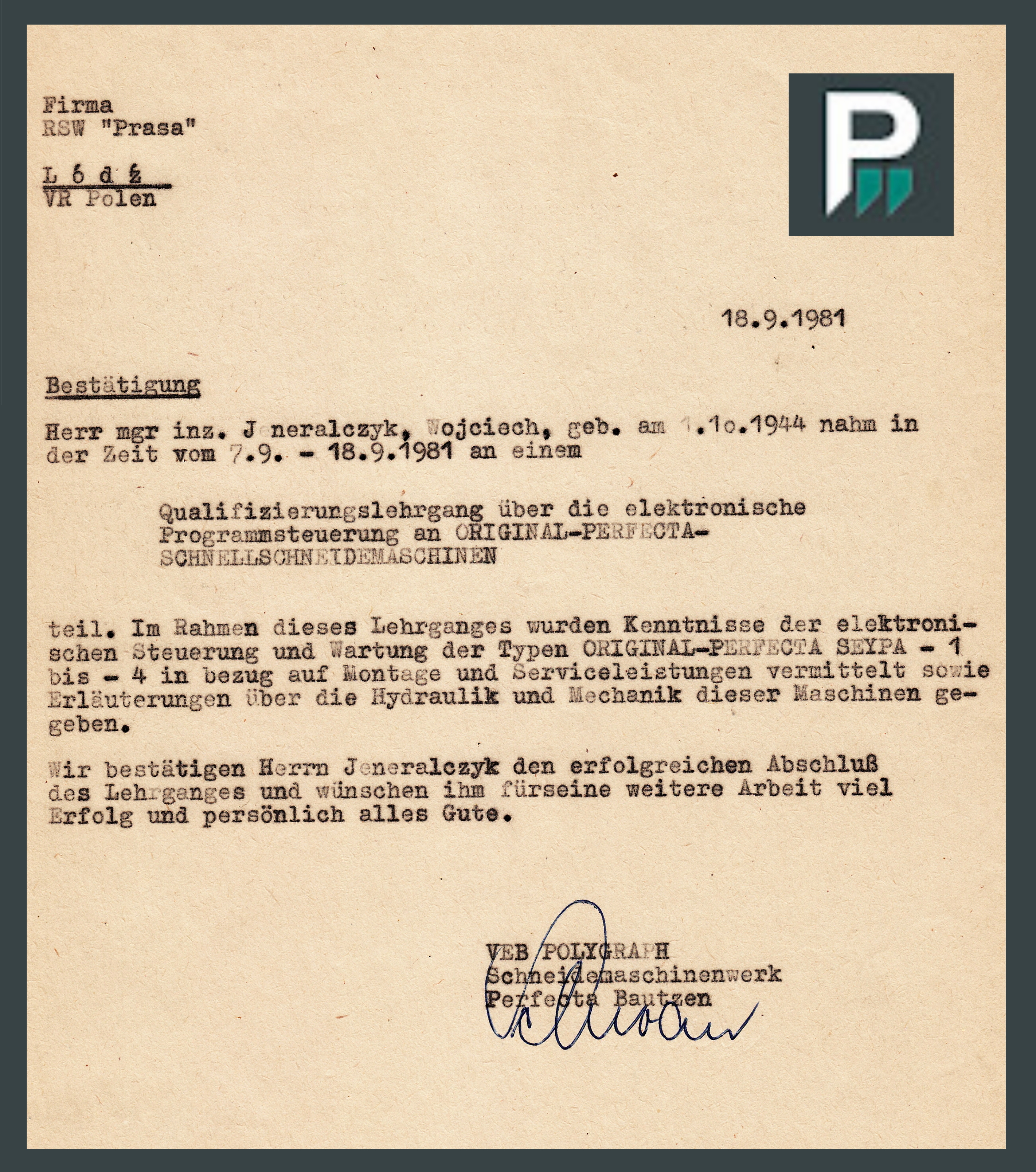Poprzedni obrazek Następny obrazek VEBBautzen 1981 – 10 dni w Bautzen (Budziszyn) DDR . Kurs programowanie wysokowydajnych, szybkotnących krajarek papieru w poligrafii.