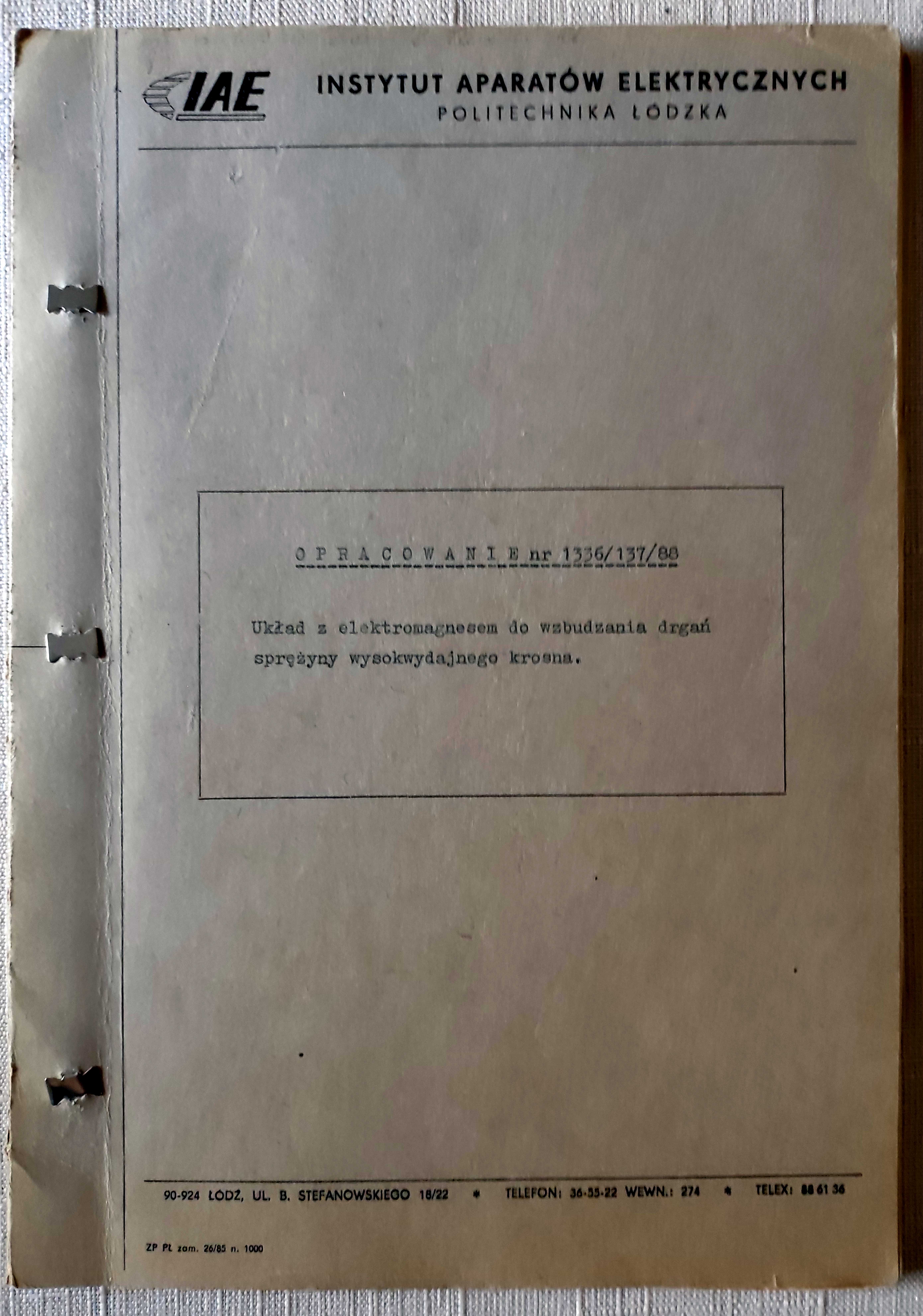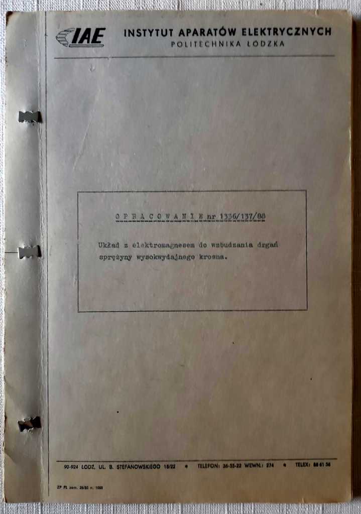 Poprzedni obrazek Następny obrazek WDWWKT-st 1987 – pierwszy etap elektronicznego sterowania wzbudnikiem wysokowydajnego krosna na zlecenie Zakładu Maszyn Włókienniczych Instytutu Konstrukcji Maszyn PŁ (okładka opracowania)